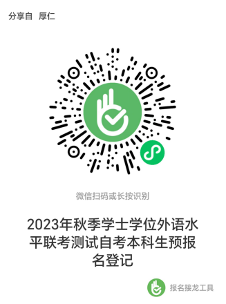 用微信扫描下方二维码,填写姓名、性别、自考准考证号等信息,完成预报名。