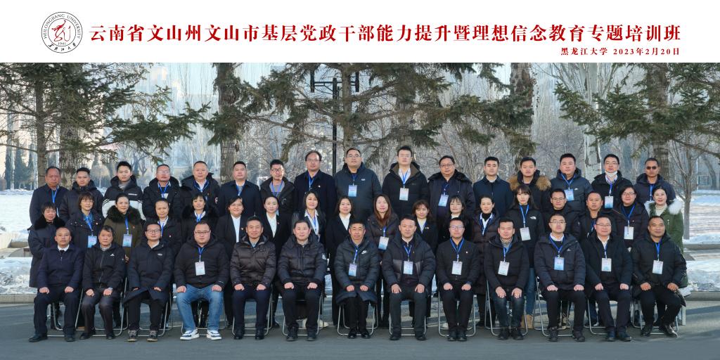 2月19日-2月27日,黑龙江大学继续教育学院承办的云南省文山州文山市基层党政干部党性教育暨能力提升专题培训班在我校成功举办。来自云南省文山州文山市各乡镇党委、街道党工委、市属各有关单位共计45人参加了为期一周的集中培训。
