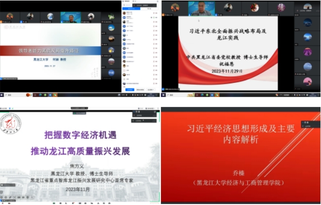 为高质量办好本次培训班,学院邀请到何颖教授主讲《领导者能力素质及其提升路径》、祝福恩教授主讲《习近平东北全面振兴战略布局及龙江实践》、焦方义教授主讲《把握数字经济机遇,推动龙江高质量振兴发展》和乔榛教授主讲《习近平经济思想形成及主要内容解析》等4个专题。
